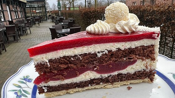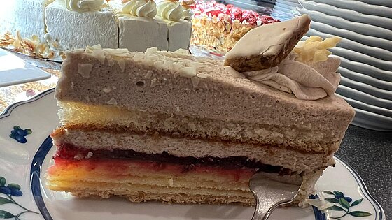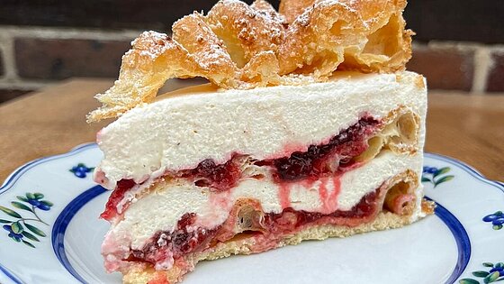 Die Hofkonditorei versüßt uns die regnerischen Tage mit einer Drei-Beeren-Torte mit Schokolade und Kokos.