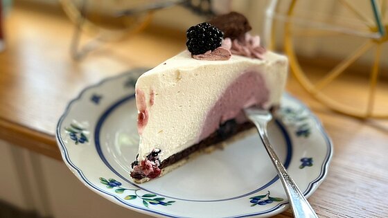Im Juni verwöhnt uns unsere Hofkonditorei mit einer Brombeere-Käse-Sahne-Torte mit Brombeerlikör.