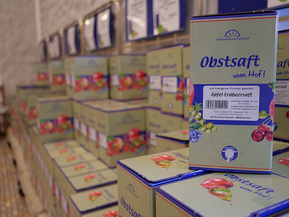 Unsere Fruchtsaft-Variationen sind jeweils in 5-Liter-Bag-in-Boxen erhältlich, die auf dem Hof befüllt werden und mit einem ausgeklügelten Abfüllmechanismus ausgestattet sind: Ihre Wunschmenge Saft können Sie dabei bequem über einen Zapfhahn entnehmen, ohne die Box dafür anheben zu müssen. Die Besonderheit: Bei der Betätigung des Zapfhahns gelangt kein Sauerstoff in den verbleibenden Inhalt. So bleibt der angebrochene Saft – auch ungekühlt – noch mindestens acht Wochen haltbar.